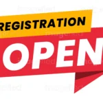 Registration Open Sign, Sticker, Banner Poster Label